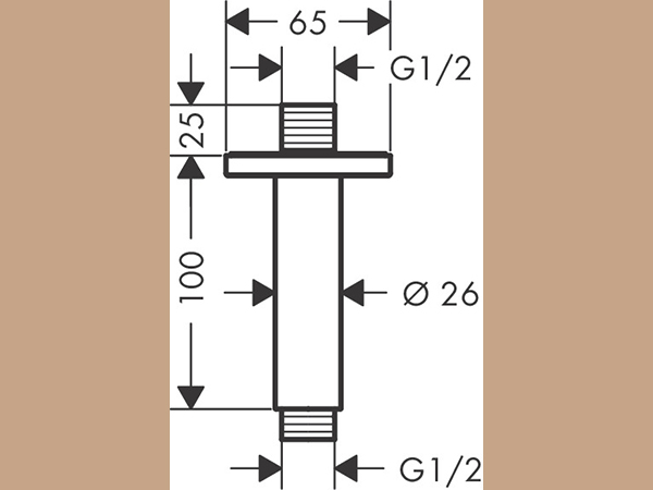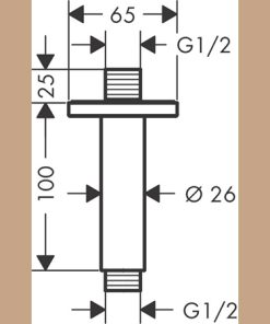 – Länge: 100 mm – Schaft Durchm.: 26 mm – Deckenmontage – Installationsart: Aufputzmontage – Anschlussgewinde G 1/2 – Anschlussgröße G 1/2