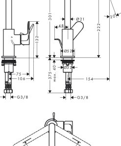 – besteht aus: Einhebel-Waschtischmischer, Ablaufgarnitur – ComfortZone 210 – Ausladung: 154 mm – Schwenkbereich 120Grad – Strahlart: Normalstrahl – maximale Durchflussmenge bei 3 bar: 5 l/min – Keramikmischsystem – Temperaturbegrenzung einstellbar – für Durchlauferhitzer geeignet – Zugstangen-Ablaufgarnitur G 1 1/4 – Material Ablaufventil: Synthetik – Anschlussart: G 3/8 Anschlussschläuche72536000