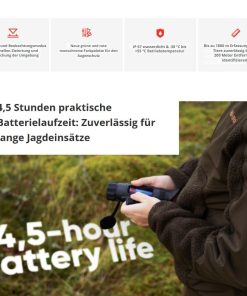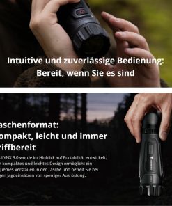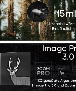 - AI-Bildverarbeitung Image Pro 3.0: Das System verbessert Kontraste und Details automatisch. Jäger erkennen Wildkörper klarer in dichtem Unterholz. Feine Wärmesignaturen treten hervor.