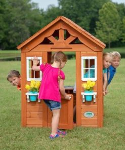 - Kinderspielhaus aus Holz mit breiten Fenstern für Brise und natürliches Licht