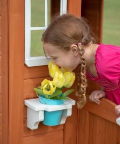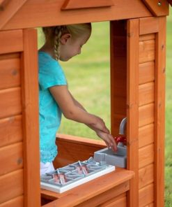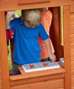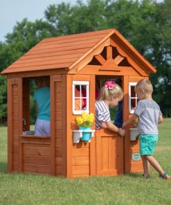Das Holzspielhaus Timberlake ist ein Spaß für die ganze Familie. Es wird in jedem Außenbereich hervorragend aussehen und verfügt über große Fenster, die viel natürliches Sonnenlicht und Brisen hereinlassen. Die Vorderseite des Holzspielhaus Timberlake ist mit Blumentopfhalterungen und einer niedlichen Tür ausgestattet, die für einen einfachen, aber eleganten Stil sorgt, der sogar zu einem Herzstück Ihres Gartens werden kann . Auf einer Seite dieses Backyard Discovery-Spielhauses gibt es ein Snackfenster, an dem Sie an einem Sommertag kühle Getränke und andere Arten von Spielen ausgeben können. Im Inneren befinden sich lustige Accessoires, darunter ein Spielbecken, ein Herd und ein schnurloses Telefon, mit denen sie spielen können. Das Beste aus allem ist, dass das Timberlake-Kinderspielhaus aus Holz mit der Hilfe eines Erwachsenen in weniger als einer Stunde zusammengebaut wird. Egal, ob Sie ein oder mehrere Kinder haben, dieses lustige Set wird sie stundenlang unterhalten. Das hölzerne Spielhaus „Backyard Discovery Timberlake“ aus Zedernholz wird schnell im Mittelpunkt des Interesses stehen, und mit allen eingebauten Funktionen kann jeder einen Weg finden, um dabei zu sein.