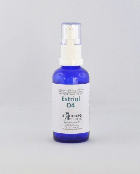 Die verschreibungsfreie Estriol D4 Creme enthält das bioidentische Hormon Estriol in der homöopathischen Potenz D4. Die Potenzierung erfolgt von Hand und das bioidentische Hormon wird vor der Verarbeitung auf Identität und Reinheit geprüft.