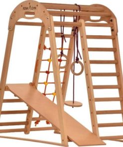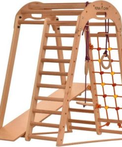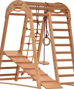 Verwandeln Sie Ihr Zuhause in einen aufregenden Spielplatz mit diesem Indoor Klettergerüst Holzspielplatz für Kinder – ideal für drinnen und perfekt abgestimmt auf die Bedürfnisse Ihrer Kleinen.