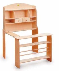 Treten Sie doch näher. Schauen und kaufen Sie ein im Erzi-Shop – Das Rollenspiel mit einem eigenen, eingerichteten Kaufladen macht gleich doppelt so viel Spaß. Es kann verkauft, verhandelt und getauscht werden, ganz wie es die Großen machen. So werden im Spiel alltägliche Erlebnisse verarbeitet, erprobt und gefestigt. Bei der Eigenmontage des in Deutschland hergestellten Kaufladens heißt es, noch vor dem Einräumen und Verkaufen kann der kleine Verkäufer beim Bau seines Ladens gleich einmal mitbestimmen: Kommt der Eingang links oder rechts? Zusätzliche Details machen eine individuelle Gestaltung des robusten und strapazierfähigen Kaufladens möglich. Unterschiedlich hohe und breite Regalflächen und zwei Schubkästen bieten überraschend viel Platz kleine und große Kaufladenartikel unterzubringen.