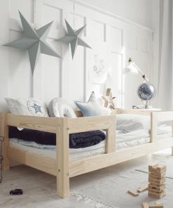 Kinderbett Blue– Wenn Sie ein Kinderbett Blue kaufen, erhalten Sie einen kompletten Bettrahmen mit einem Matratzenrahmen, vertikalen Balken und einer Reihe von Barrieren,  die Betten sind mit wasserbasierten, geruchlosen und ökologischen Farben lackiert.