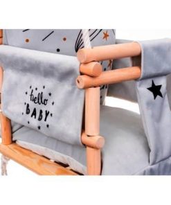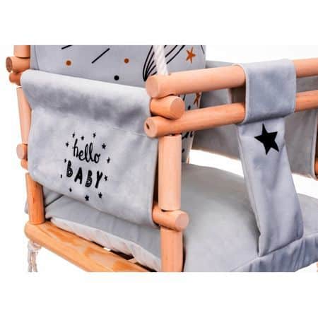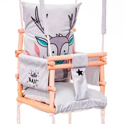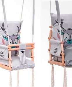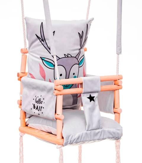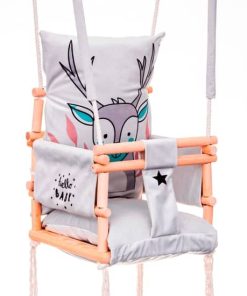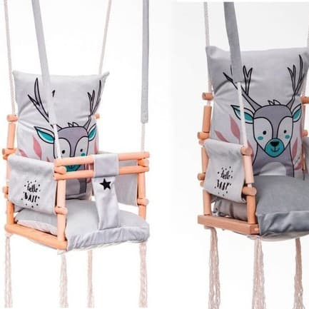 Das Unternehmen, welches dies Schaukeln herstellt verfügt über die internationale EG-Konformitätserklärung, die Ihnen die Sicherheit bei der Verwendung dieser Schaukeln gewährleistet. Dies ist ein Beweis dafür, dass das Unternehmen in der Produktion von Kinderschaukeln sukzessive Standards setzt und aufrechterhält. wächst mit einem Kind. Die Kinderschaukel Elch 3in1ist ein wunderschönes Möbelstück für ein Kinderzimmer, das eine märchenhafte Atmosphäre schafft und Ihre Kindheit zu einem unvergesslichen Abenteuer macht. Ein großer Spaß für die jüngsten Kinder (ca. 9 Monate alt). Die Kinderschaukel Elch 3in1 aus zartem Samtplüschmaterial, das sich sehr weich und zart anfühlt und sehr strapazierfähig ist. Ein zusätzlicher Vorteil ist der originelle moderne Druck. Ein zusätzlicher Vorteil des Materials ist die Qualität von Cleanbo, die die Aufnahme von Wasser begrenzt. Jede verschüttete Flüssigkeit formt sich zu Tropfen und dringt nicht in das Innere des Gewebes ein. Wenn der Stoff schmutzig wird, müssen Sie ihn nur mit einem Tuch abwischen. Das Schaukelgestell ist aus hochwertigem Kiefernholz und gibt Gewissheit über den hohen Standard des Produktes. Die Kinderschaukel Elch 3in1 ist aus strapazierfähigem Baumwollseil fi 10 montiert, das einer Belastung von bis zu 25 kg standhält. Die Seile sind 8 m lang und passen mit 2,5 Metern Höhe perfekt in den Raum. Die Seile können von Ihnen selbst eingestellt werden. Enthalten sind zwei dicke Metallräder zum Aufhängen. Es ist ausreichend, Montageschrauben für Beton oder Holz zu kaufen, je nachdem, wo die Schaukel hängt (eine Reihe von Haken ist erhältlich), die mit Ihrem Kind mitwächst. Wenn das Kind wächst, müssen Sie nur die vorderen Sprossen demontieren. Wenn es groß ist, können Sie alle Sprossen abnehmen, so haben die grossen Kinder eine Sitzbank.