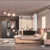 2-türiger Kleiderschrank mit einer großen Schublade, die auf Metallschienen gleitet