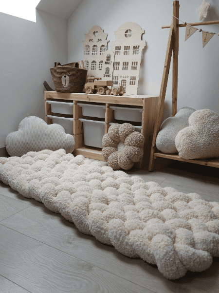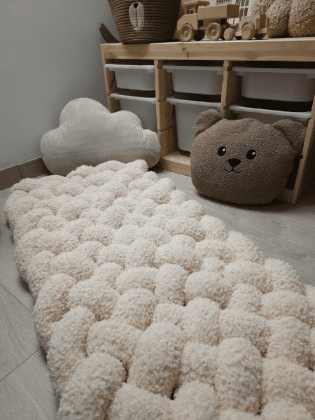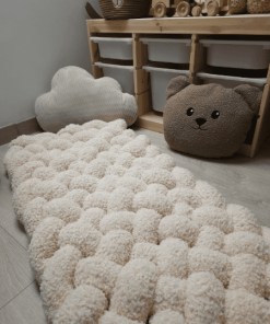 Kinderteppich Teddy – wundervoller Kinderteppich aus Teddystoff, kuschlig weich und ein Blickfang in jedem Kinderzimmer, meist wirkt dieser Teppich sehr schön vor einem Hausbett oder Kinderbett. Die geflochtene Struktur mach diesen Kinderteppich einzigartig und verschönert das Kinderzimmer, auch der Wohlfühlmodus wird durch diesen angenehmen Teddystoff verstärkt.