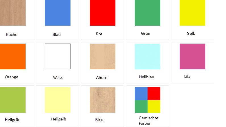 ✅ Farben Korpus und Türen: wahlweise in Buche, Ahorn oder Weiß