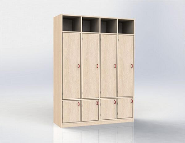 Die geschlossene Ausführung sorgt für ein ordentliches Gesamtbild im Garderobenbereich und schützt persönliche Gegenstände vor Staub und Blicken. Die klare Aufteilung fördert Selbstständigkeit, Ordnung und Struktur im Alltag der Kinder.