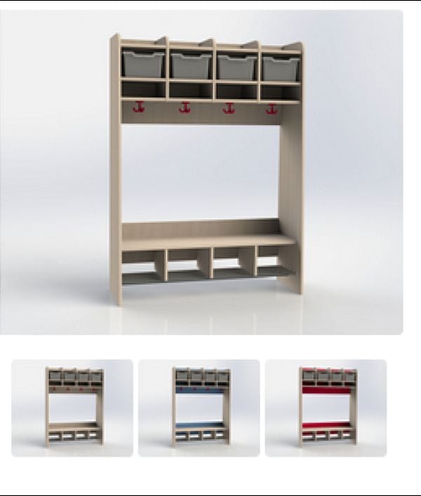 Kitagarderobe mit Boxen, Sitzbank & Schuhfach – massiv, farbig kombinierbar & funktional. In Ahorn, Birke, Weiß oder Buche.