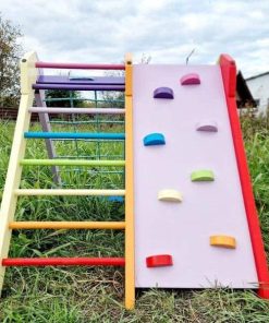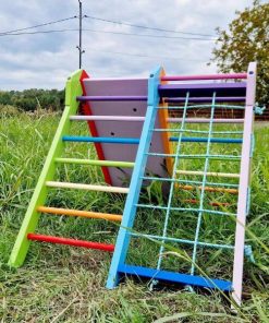 Dank des faltbaren Rahmens lässt sich das Kletterdreieck einfach zusammenklappen, leicht bewegen und platzsparend verstauen. Es ist sowohl für den Innen- als auch den Außenbereich geeignet, da es mit drei Schichten professioneller Farbe auf Wasserbasis behandelt wurde, die dem Spielgerät Wetterfestigkeit verleiht.
