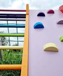 Die Primärfarbe des Rahmens und der Bretter verleiht dem Kletterdreieck einen frischen Look, während die Sekundärfarbe für die Sprossen und Klettergriffe sorgt. Du hast sogar die Möglichkeit, deine eigenen Farbwünsche umzusetzen – schreib uns einfach und wir gestalten dein individuelles Kletterdreieck!