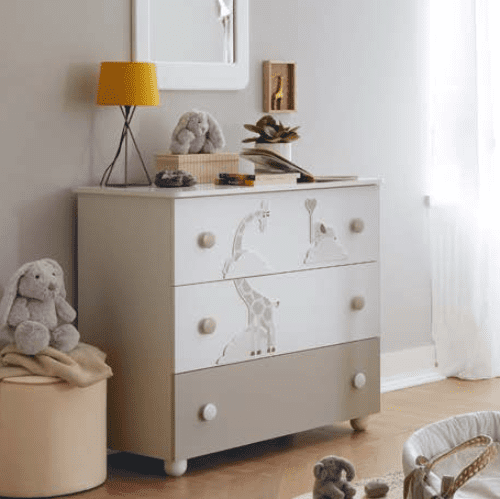 Kommode Savana– Viel Platz und Stauraum bietet diese Kommode fürs Kinderzimmer mit 3 grossen Schubladen für Kleidung und Spielsachen. Mit der kindgerechten und einzigartigen Gestaltung passt sie perfekt ins Kinderzimmer.