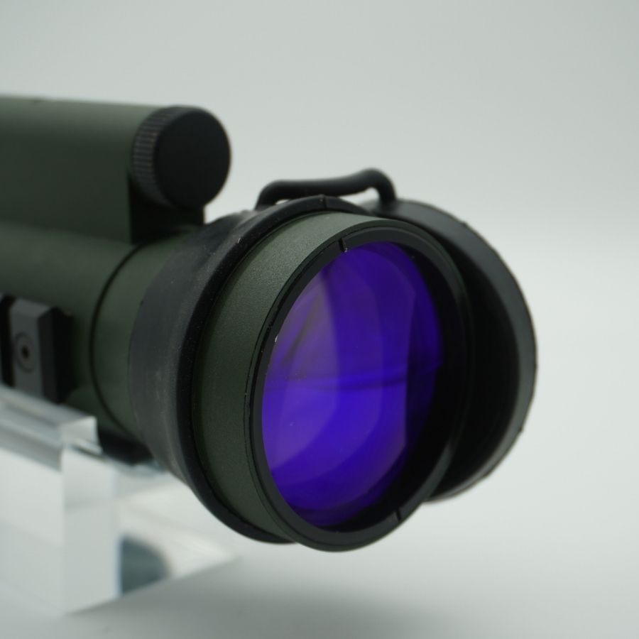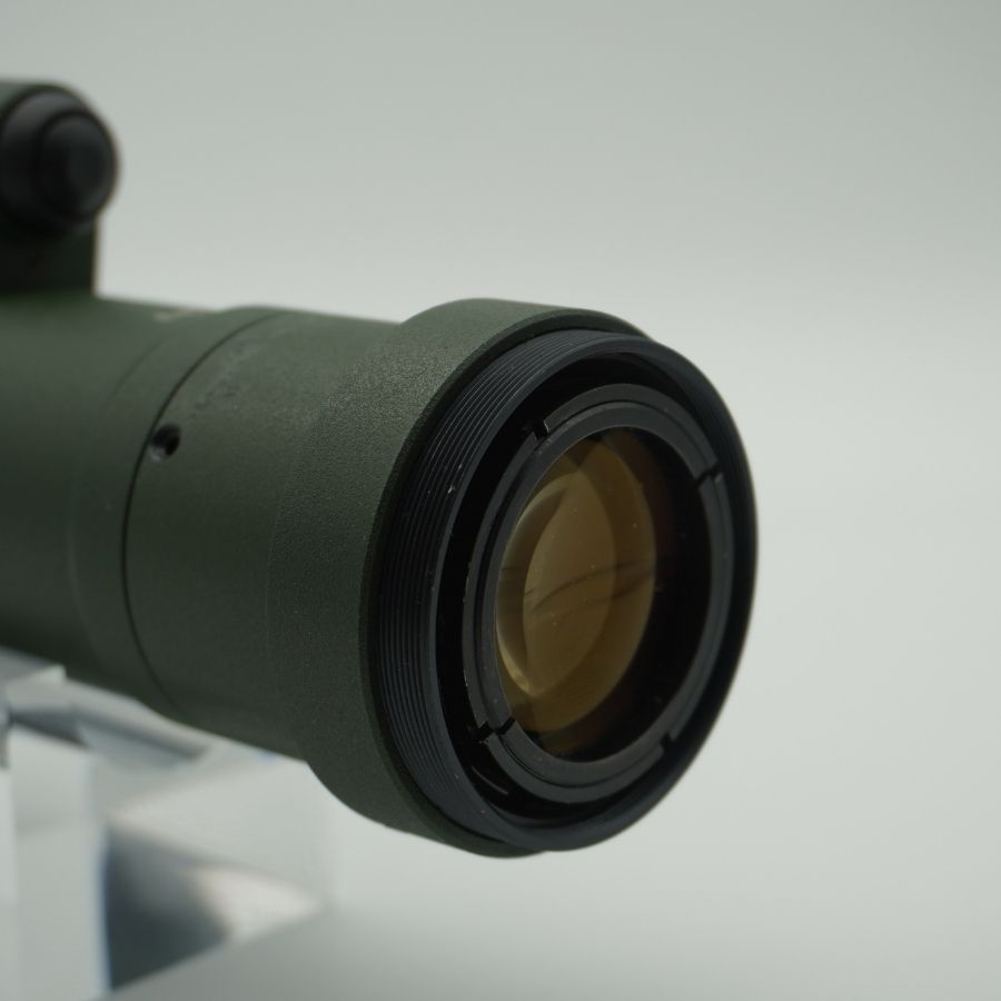 Besonders hervorzuheben ist die lange Brennweite von 80 Millimetern, was eine höhere Beobachtungsentfernung zur Folge hat. Ferner ermöglicht die spezielle AR-Beschichtung auf der Linse sehr hohe Transmissionswerte. Das Bild zeigt sich dadurch unvergleichlich scharf und sauber. Damit aber auch im schwierigem Gelände alles gesichert ist, können alle Linsen individuell stoßfest montiert werden.