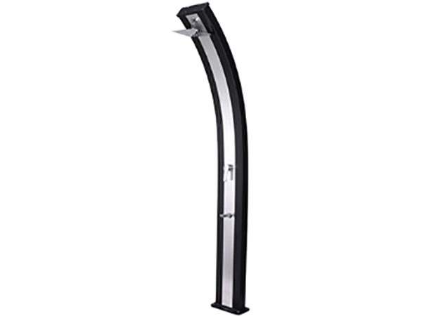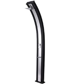 Aluminiumtank 40 l Inhalt, Elegantes Duo- Design, großer selbstentkalkender Duschkopf, Einhebel-Handmischbatterie, zusätzlicher Entnahmehahn für Kaltwasser, Ablassschraube für Winterentleerung, Höhe 220 cm. Max. Betriebsdruck 3 bar, Anschluss für Gartenschlauch.
