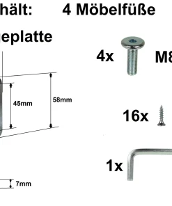 - Schrauben: M8 × 20 + Holzschrauben 3,5 × 16