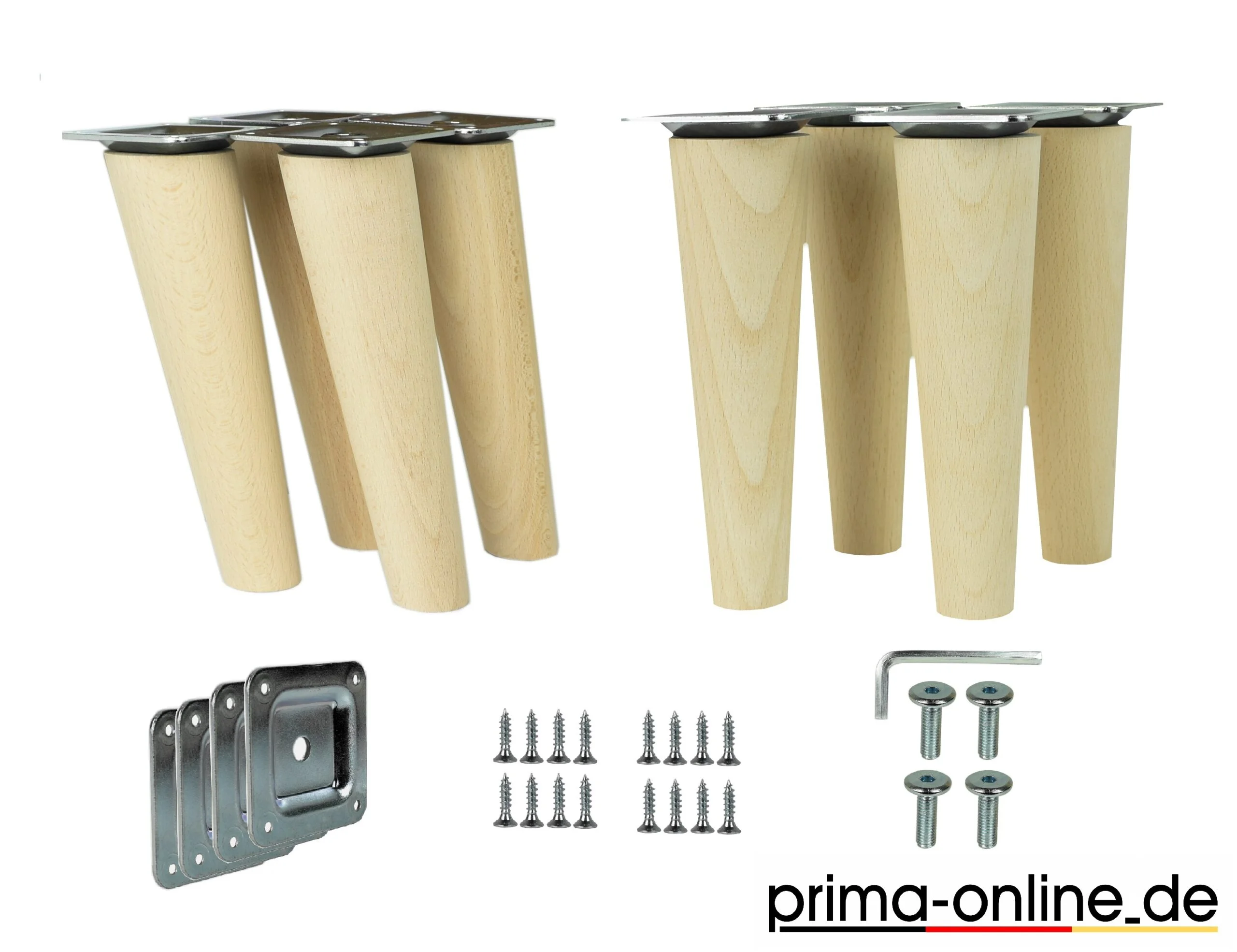 - Möbelfüße Buche konisch – massiv, roh / unbehandelt