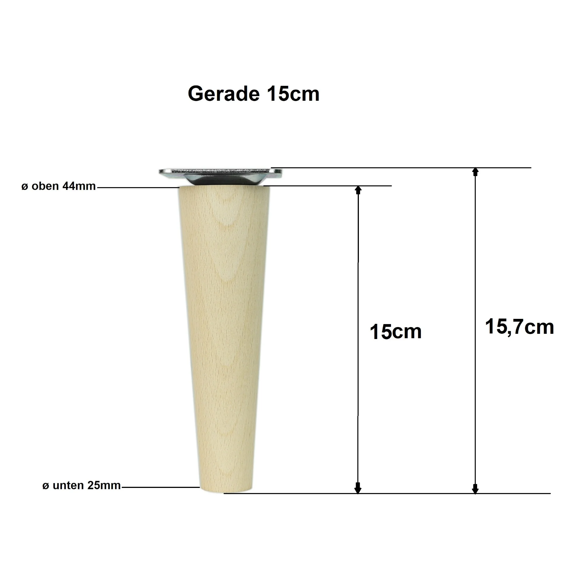 Möbelfüß Holz 15 cm – konisch, Buche massiv, M8-System