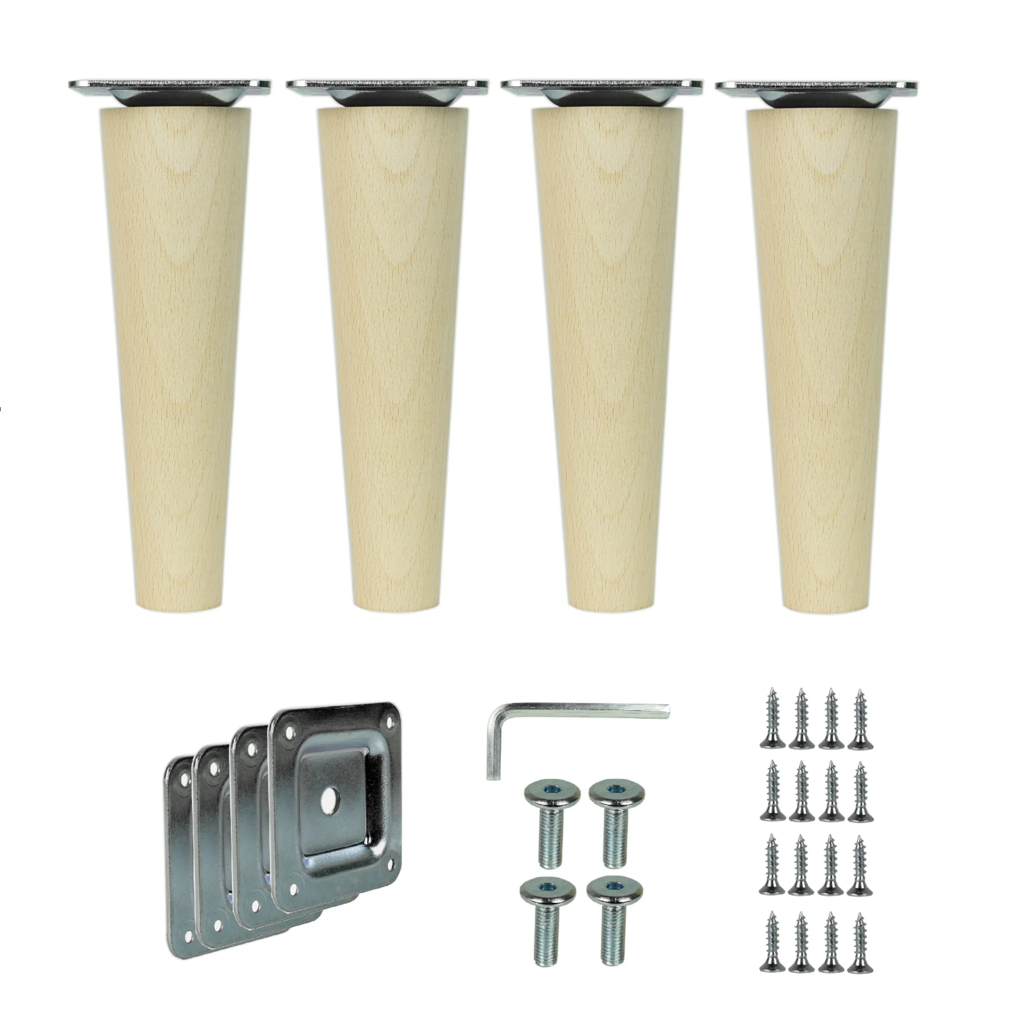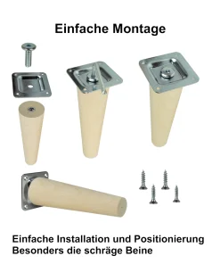 - 1× oder 4× Möbelfuß Buche konisch 15 cm
