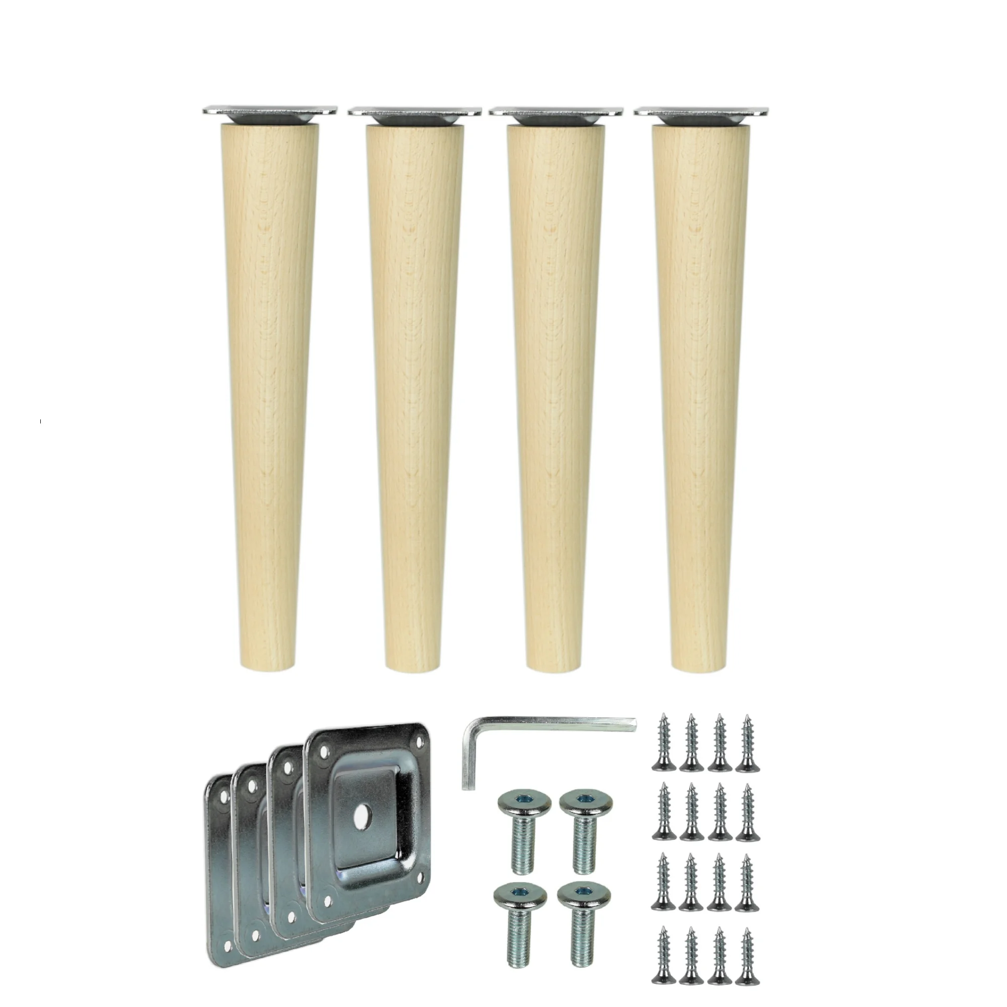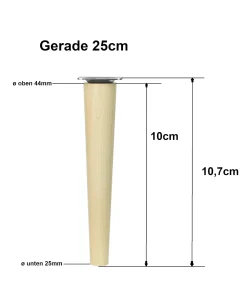 Möbelfüß Holz 25 cm – konisch, Buche massiv, inkl. Montageset