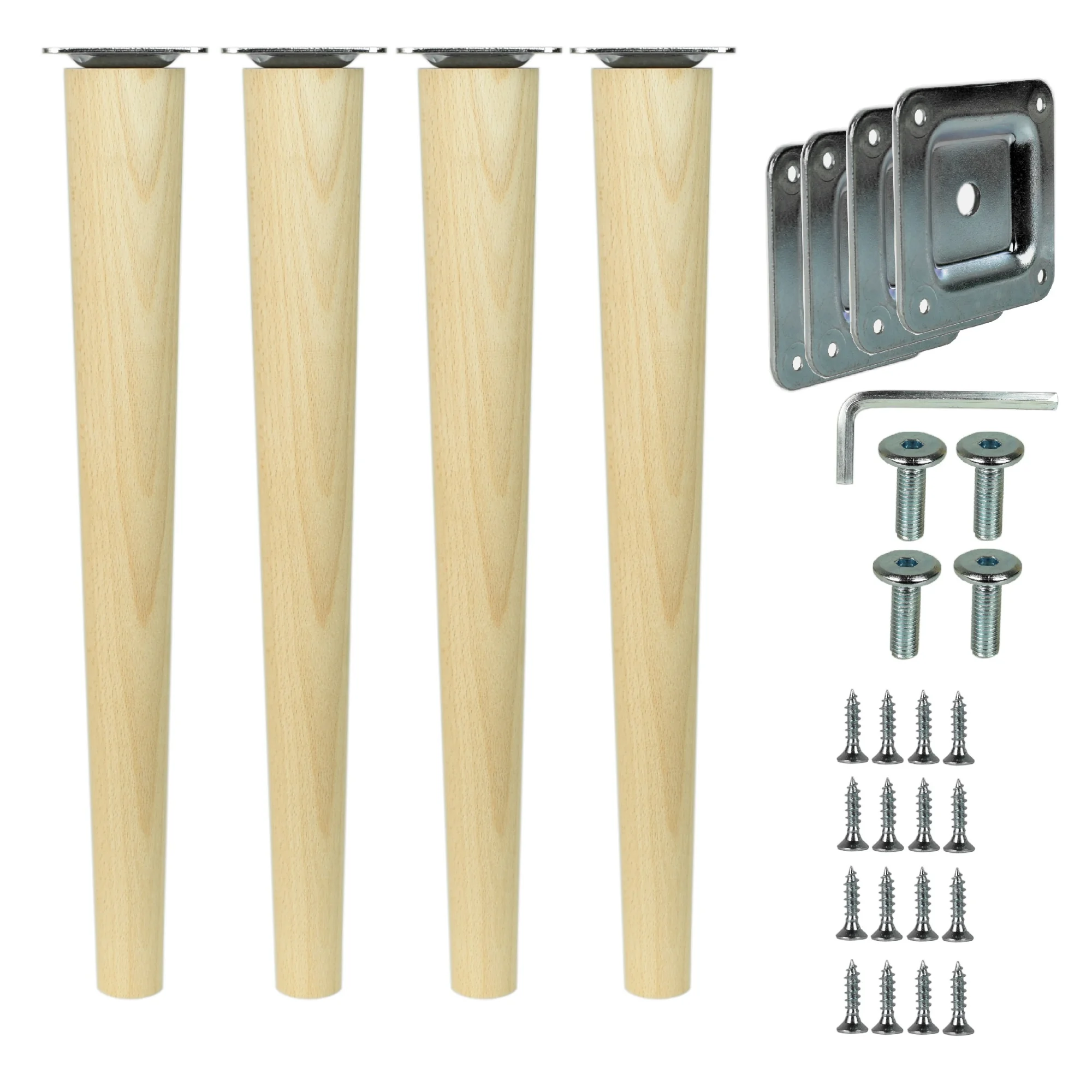 Möbelfüß Holz 35 cm – konisch, Buche massiv, inkl. Montageset