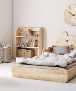 Montessori Bett „Bär“ Natürliches Montessori Bett aus Kiefernholz – kindersicher, nachhaltig & verspielt. Fördert Selbstständigkeit & bringt Magie ins Kinderzimmer.