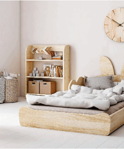 Das Montessori Bodenbett unterstützt die natürliche Entwicklung Ihres Kindes. Es fördert Bewegungsfreiheit, Selbstständigkeit und das sichere Entdecken der eigenen Umgebung – ganz im Sinne der kindgerechten Raumgestaltung.