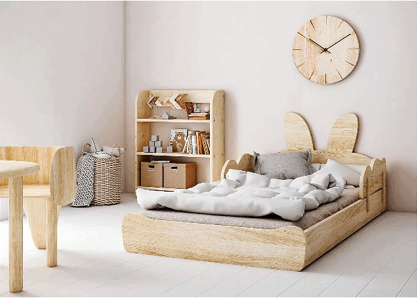 Mit seiner charmanten Hasenform und der natürlichen Holzoptik wird das Bett schnell zum Mittelpunkt jeder Einrichtung – ob im klassischen, skandinavischen oder modernen Stil.