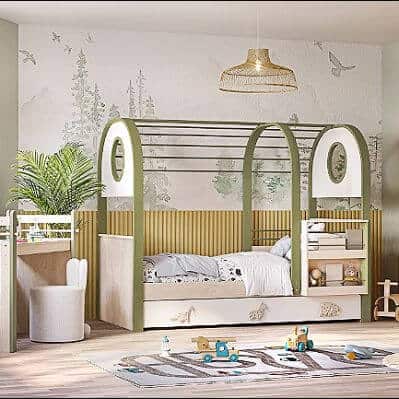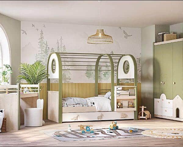 Montessori Room Green – ist angereichert mit optionalen Modulen für Familien mit Babys und Kinder, Montessori Room ist ein modernes Zimmer mit hochwertiger Qualität und mit seinem Design, das Wert auf Kinder legt.