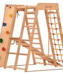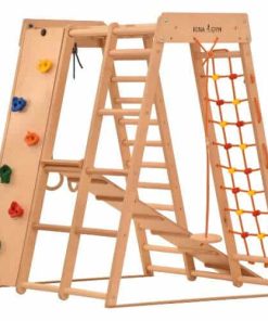Dieses Klettergerüst aus Holz ist mehr als nur ein Spielzeug – es ist eine echte Investition in die Entwicklung und den Spaß Ihres Kindes. Geeignet für Kleinkinder und Kinder, bietet es eine sichere und spannende Umgebung zum Spielen und Entdecken.