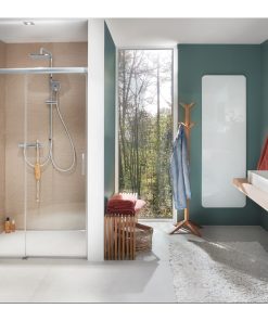 FENIX ist die erste Dusche mit Hebe-Senk-Mechanismus, bei der die Beschläge wahlweise links oder rechts montiert werden können. So bietet sie ungeahnte Kombinationsmöglichkeiten und höchste Funktionalität – und sie kommt in Bestzeit ins Badezimmer.
