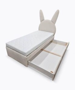 Das Polsterbett Häschen vereint modernes Design mit praktischen Funktionen und bietet Ihrem Kind einen erholsamen Schlaf und vielseitige Nutzungsmöglichkeiten. Der stabile Rahmen aus hochwertigem Birkenholz garantiert Langlebigkeit und Widerstandsfähigkeit und ist mit Federleisten ausgestattet.