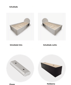 Ein besonderes Highlight ist der Schiebekasten auf Gummirollen, der mit einem großzügigen Volumen von 14 cm für zusätzlichen Stauraum sorgt und leicht zu bedienen ist. Wenn gewünscht, kann die zusätzliche Schlaffläche (bestehend aus einem Brett und 6 cm T35-Schaumstoff mit Stoffbezug) gewählt werden, um bei Bedarf eine komfortable Schlafgelegenheit zu schaffen.