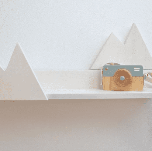 Wir bieten Ihnen ein an der Wand montiertes Regal für Kinderspielzeug, Bücher oder andere Schätze.