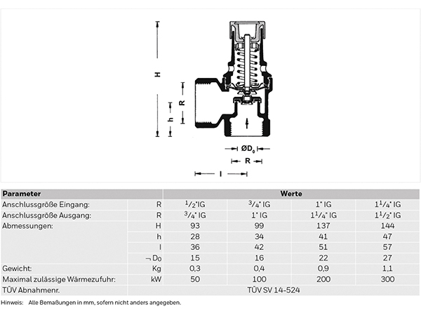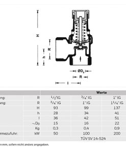 Resideo Membran-Sicherheitsventil SM120 für geschlossene Heizungsanlagen mit einer Vorlauftemperatur bis 120Grad C nach DIN 4751, Teil 2 und Teil 3, bauteilgeprüft gemäß TRD 721 Gehäuse und Federhaube aus Messing, Membrane und Dichtung aus heißwasserbeständigem Elastomer. Mit Anlüftvorrichtung. In Eckausführung mit beiderseits Innengewinde.