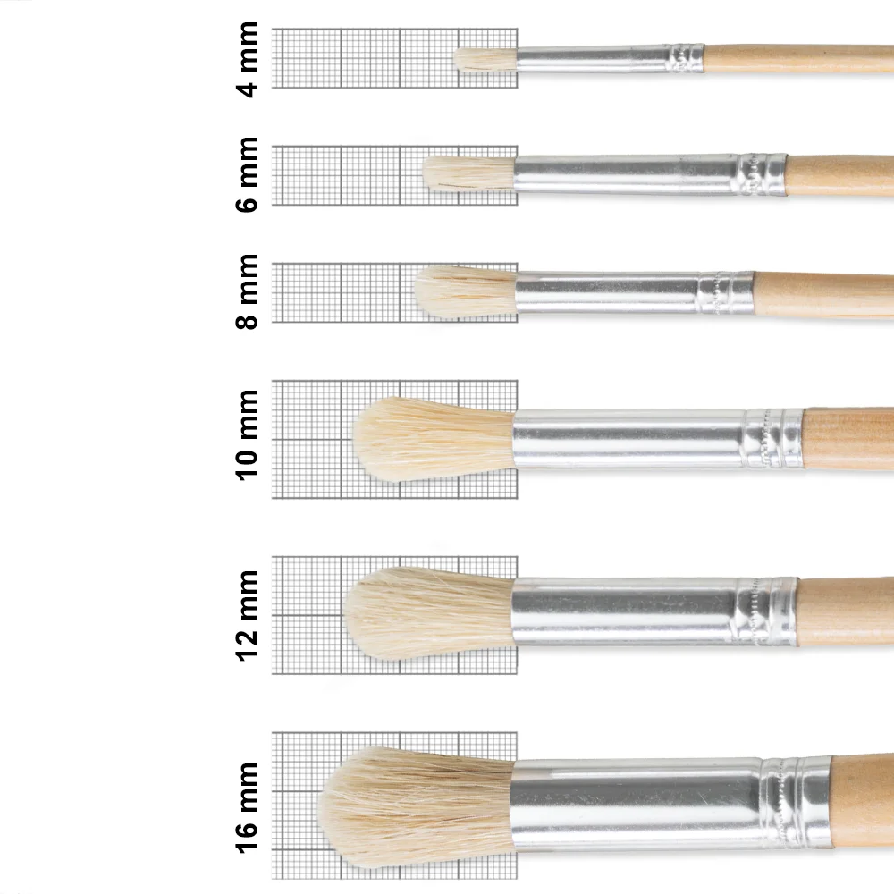 Ja: 4 mm, 6 mm, 8 mm, 10 mm, 12 mm und 16 mm. Klicken Sie auf die gewünschte Größe. - Eignet sich der Pinsel für Wasser- und Lösemittellacke?