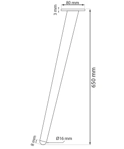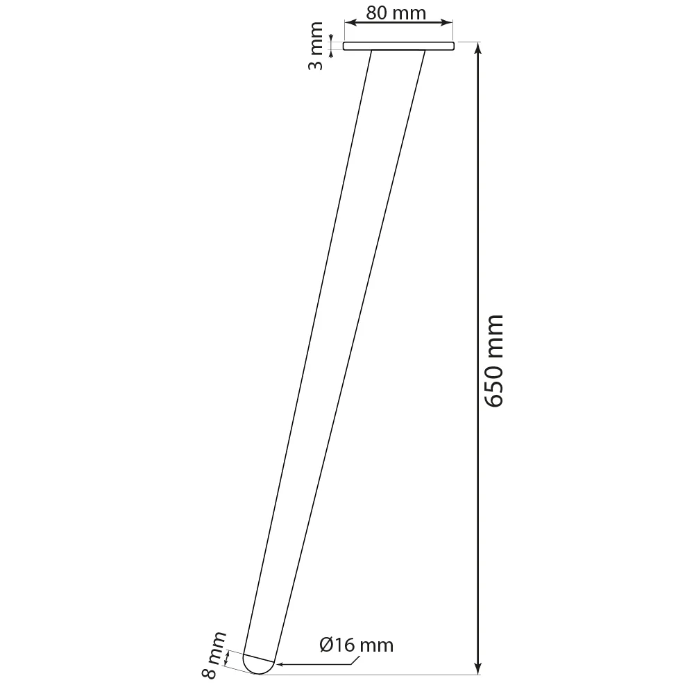 Der Möbelfuß 65 cm schräg besteht aus Ø16-mm Stahlrohr und eignet sich als stabiles Bein für Tischgestelle, Konsolen und Möbelrahmen. Die 80×80-mm Montageplatte gewährleistet eine sichere Kraftübertragung, während die schwarze Pulverbeschichtung dauerhaften Schutz bietet.
