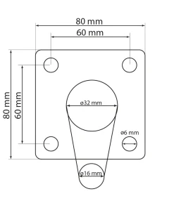 | Montageplatte | 80×80 mm, 3 mm Stahl, Lochabstand 60 mm |