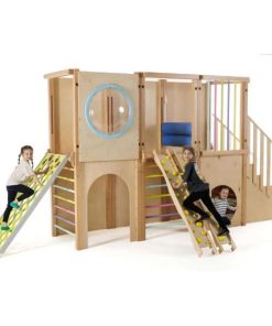 Die Module des Motus-Systems sind modular aufgebaut und können individuell an Ihre Raumgegebenheiten angepasst werden. Die Struktur ist freistehend, benötigt keine Befestigung an Boden, Wänden oder Decke und kann somit auch zentral im Raum platziert werden – ideal für Gruppenräume und Bewegungsbereiche in Kitas.