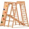 Paket beinhaltet: Sprossenwand mit höhenverstellbarer Stange, Strickleiter, Kletterseil, Ringe zum Turnen, Schaukel, Holzbrett, Wandmontage-Set