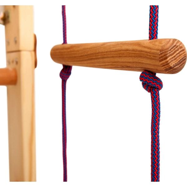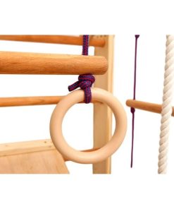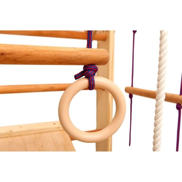 Dieses Kombi Set verfügt über Stangen, Ringe, Leitern, Seile und eine Schaukel. Diese zahlreichen Funktionen fördern stundenlanges Spielen und verbessern die Feinmotorik und Muskelkraft. Womöglich haben Sie sogar einen angehenden Turner im Haus!