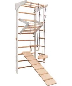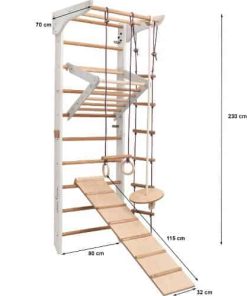 Sprossenwand Nordic – Dieses Spielset der Sprossenwand Nordic  verfügt über Stangen, Ringe, Leitern, Seile, eine Rutsche und eine Schaukel. Diese zahlreichen Funktionen fördern stundenlanges Spielen und verbessern die Feinmotorik und Muskelkraft. Womöglich haben Sie sogar einen angehenden Turner im Haus!