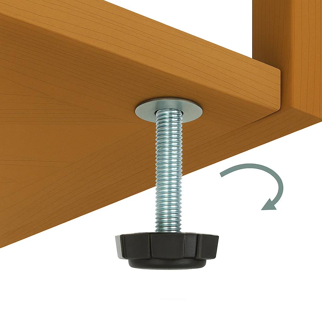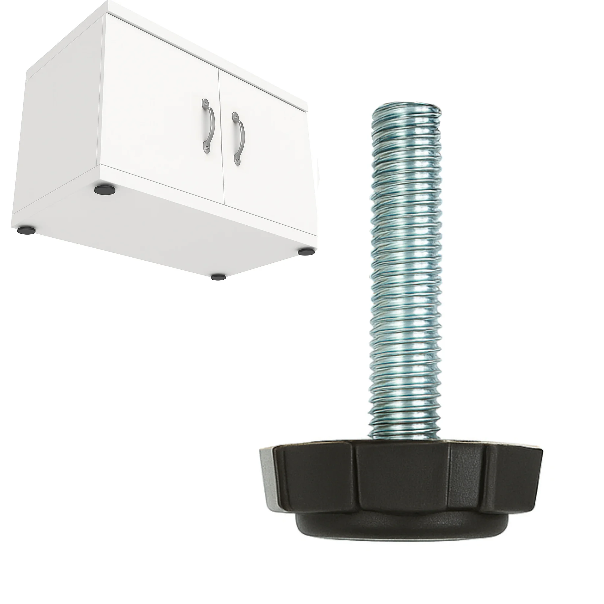 Robuster Stellfuß M6 höhenverstellbar zur präzisen Nivellierung von Möbeln, Regalen und Geräten.