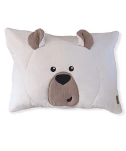 Teddybärkissen – Wir präsentieren Ihnen ein weiches und zartes Kissen mit einem aufgestickten Teddybärenkopf, welches es in drei beliebten Farben gibt. Das Kissen besteht aus GOTS-Musselin und hat eine antiallergische Füllung. Die Kissen sind sehr dekorativ und werden ihren Kindern gleichzeitig ein schönes Schmusekissen/ Maskotchen sein. Die Teddybärkissen sind handgemacht und sehr hochwertig verarbeitet.