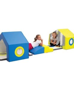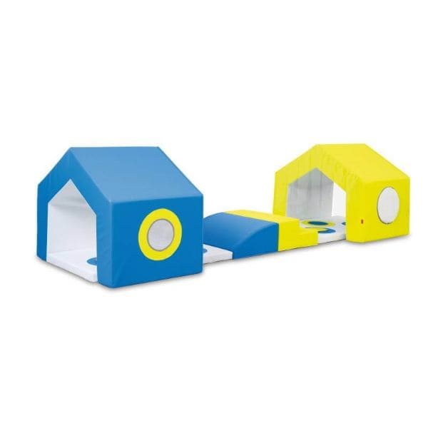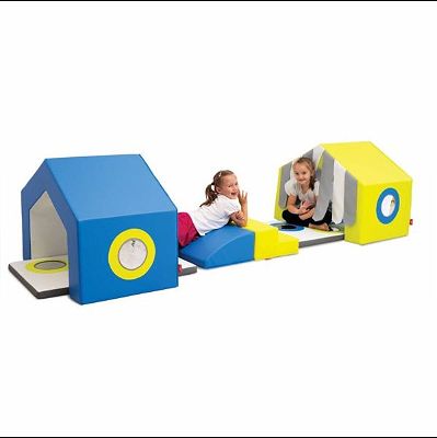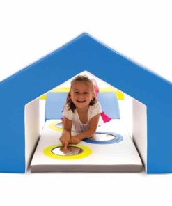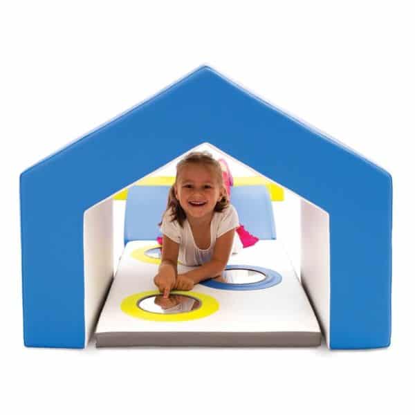 - 1 x Spielhaus mit Spiegeln (92 x 60 x 74 cm, Spiegel Ø18 cm, Materialien: blaues und weißes Kunstleder)