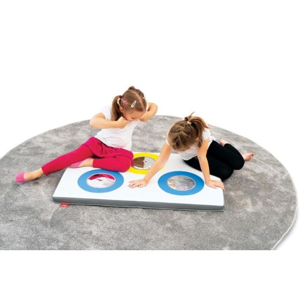 - 2 x Bodenmatten mit Spiegeln (100 x 5 x 60 cm; Spiegel Ø18, Material: weißes, grünes und blaues Kunstleder)