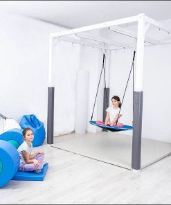 Therapieschaukel mit LED-Beleuchtung – speziell entwickelt für sensorische Integrationsräume. Durchmesser 100 cm, höhenverstellbar bis 160 cm, stabile verzinkte Rohrkonstruktion (2,5 cm Durchmesser) und hochwertiges Polyestergewebe sorgen für Sicherheit und Langlebigkeit. Integrierter LED-Streifen erhöht das sensorische Erlebnis, während die sanfte Seilaufhängung ein ruhiges Schaukeln ermöglicht. Geeignet zur Förderung von Koordination, Muskeltonus und sensorischer Integration. Aufhängung erfolgt über Seile (1 cm) an einem SI-Käfig aus Holz mit Kugelgelenken (separat erhältlich).LED-Streifen benötigen 3 AAA-Batterien (nicht im Lieferumfang enthalten). Maximale Belastung 100 kg. Gewicht 4,30 kg. Nur unter Aufsicht Erwachsener verwenden.