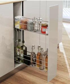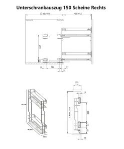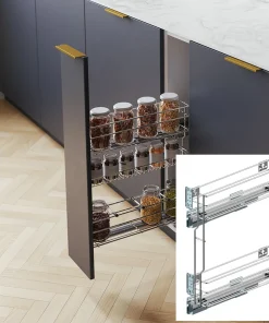 Schrankauszug 150 mm Soft-Close – 2 Etagen, Chrom, montage rechts