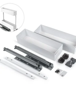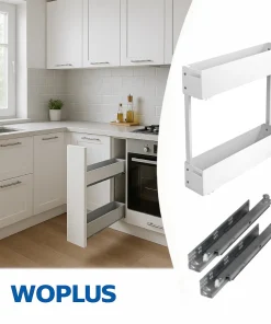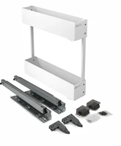 Mit dem Unterschrankauszug woplus mit Softclose bringen Sie Ordnung und Komfort in Ihre Küche. Der funktionale Küchenauszug mit 2 Etagen passt perfekt in schmale Unterschränke mit 150 mm oder 200 mm Breite und überzeugt durch seitliche Montage und leisen Vollauszug.